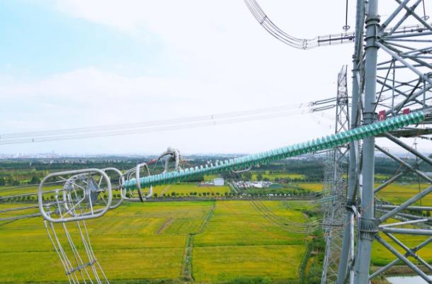 國網(wǎng)上海超高壓公司線路檢修人員在1000千伏特高壓吳塘線開展帶電作業(yè)消缺工作。