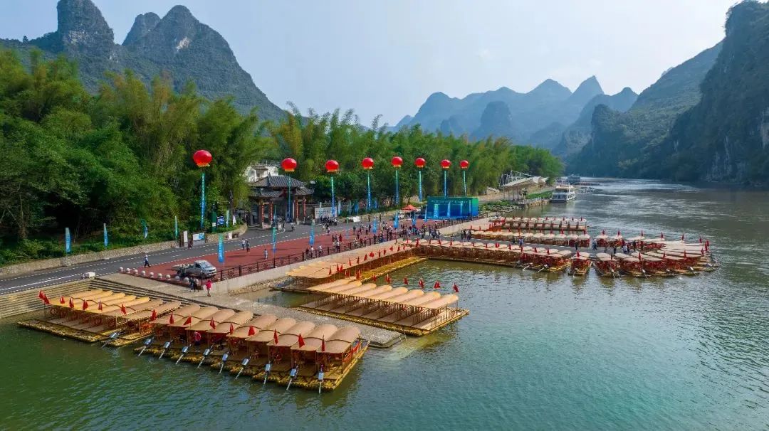 ▲南方電網(wǎng)廣西電網(wǎng)公司在桂林陽朔楊堤碼頭及興坪大河背碼頭建設(shè)的兩座電動竹筏充電站,為電動竹筏提供充換電服務(wù)。(廖嘉琦 攝)