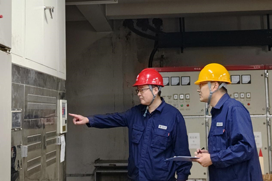 國(guó)網(wǎng)石家莊供電公司橋東供配電中心服務(wù)人員對(duì)石家莊一中配電室設(shè)備進(jìn)行巡檢。 蘇鳳宇攝