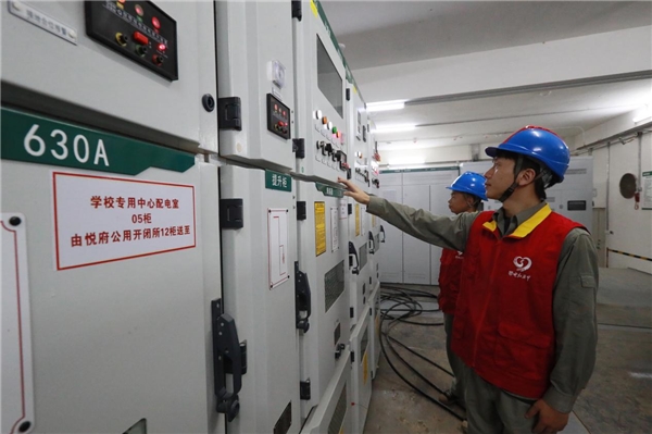 與此同時,在黃陂區(qū)第一中學,服務隊員仔細查看了校園內(nèi)的用電設備使用情況。由于暑假期間學校的電氣設備大多處于閑置無負荷狀態(tài),加之夏季高溫、暴雨等多種因素影響,開學后校園用電負荷將大幅增長,容易導致用電設備出現(xiàn)短路、漏電等安全隱患。服務隊員根據(jù)學校的實際情況,逐一檢查校內(nèi)配電室的高低壓柜、變壓器、備用電源以及教學樓、食堂等處的用電線路及用電設備,對學校內(nèi)部線路絕緣老化、進出線連接不規(guī)范、開關接觸不良等問題及時處理,積極配合校方進行整改,確保學校用電設備在開學之前全部正常運轉(zhuǎn)。“根據(jù)咱們學校的用電負荷特點,我們優(yōu)化了供電線路的布局,也合理調(diào)整了變壓器的運行檔位,制定了詳細的專項保供電方案,并與學校建立聯(lián)動機制,確保開學時的正常供電。”服務隊員一邊進行安全用電檢查,一邊對學校后勤相關負責人說道。