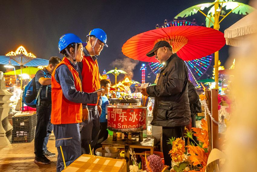西雙版納供電局營(yíng)銷人員對(duì)告莊景區(qū)商戶開展安全用電宣傳。任軍攝