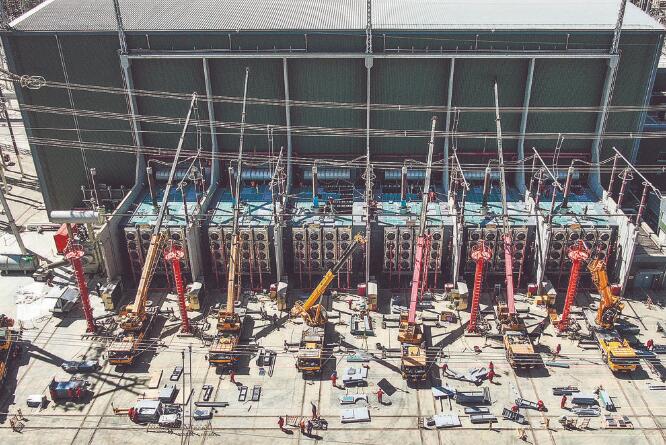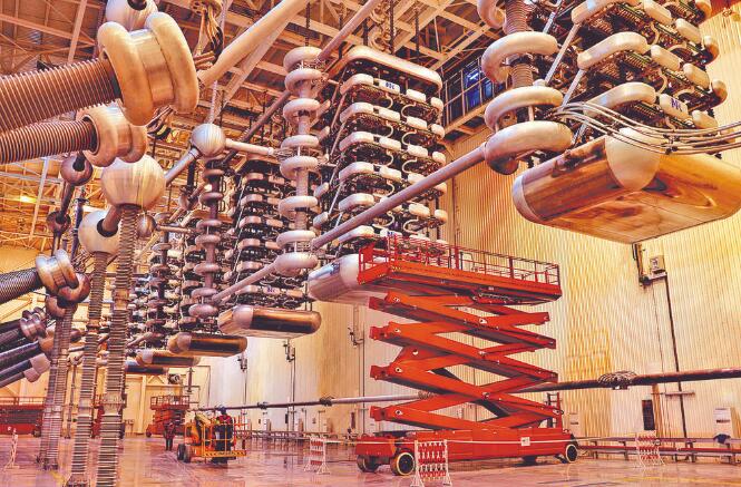 黨員在檢修±1100千伏昌吉換流站極I低端閥廳設備。郭健 攝