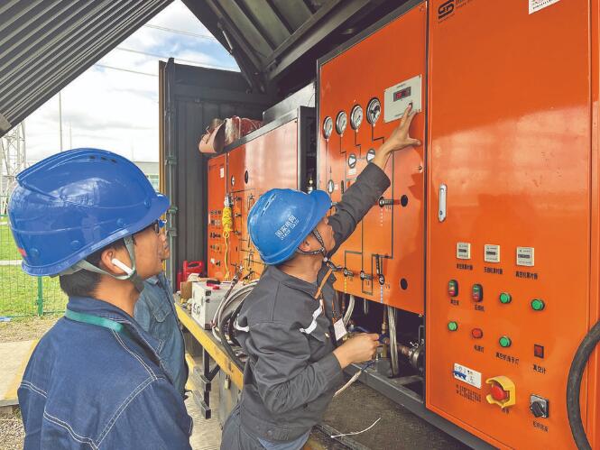 “更換過程中,為了保證舊斷路器不受潮,我們在拆下的套管及本體氣室內(nèi)及時(shí)充入高純氮?dú)獠⑥D(zhuǎn)移存放。在支架及本體就位后,套管要在環(huán)境滿足條件的情況下才能進(jìn)行安裝。”國網(wǎng)甘肅超高壓公司變電檢修中心變電一次檢修五班班長邵建軍說。檢修人員在保證新斷路器安裝質(zhì)量的同時(shí),還要開展六氟化硫氣體微水及組分檢測、斷路器常規(guī)試驗(yàn)和耐壓試驗(yàn)等一系列工作,確保斷路器更換質(zhì)量合格。