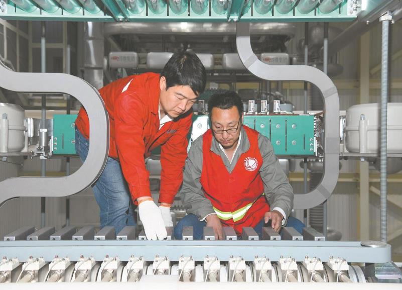 檢修人員在古泉換流站開(kāi)展升壓變壓器試驗(yàn)接線作業(yè)。穆靖宇 攝