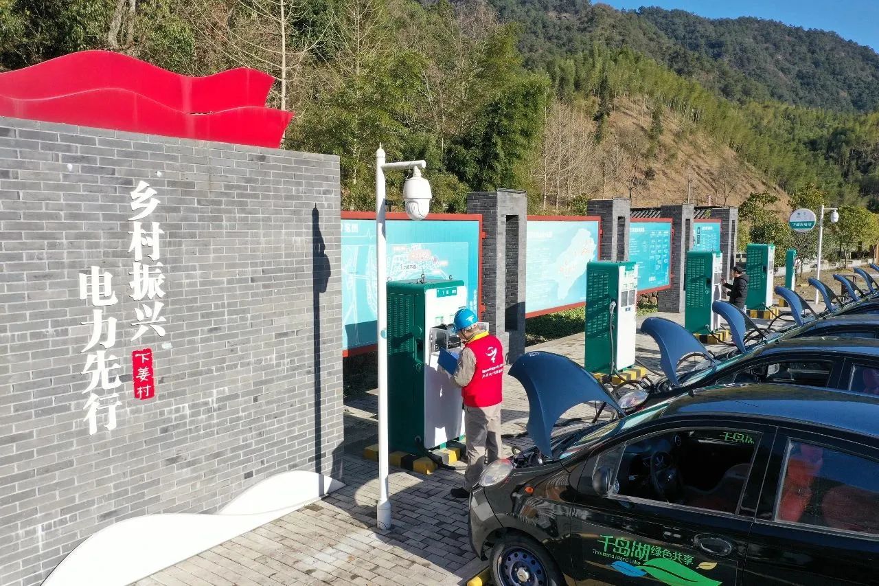 供電員工在杭州市下姜村檢查電動汽車充電設(shè)施