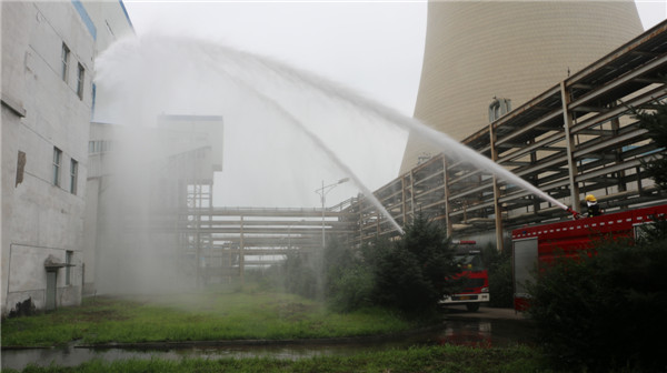 9時,各參演單位集結(jié)完畢,副廠長宣布“大唐長山熱電廠輸煤系統(tǒng)火災(zāi)演練”開始。本次演練假想為燃運分場運行人員巡視檢查中發(fā)現(xiàn)1號機組輸煤4段尾部皮帶積粉燃燒,輸煤皮帶冒煙著火,運行人員發(fā)現(xiàn)火情后立即匯報集控班長并就地使用滅火器進(jìn)行撲救,集控班長接到報告后立即撥打火警電話告知火災(zāi)地點,同時報告值長和燃運分場主任,并組織集控值班員趕往火災(zāi)地點進(jìn)行撲救。值長立即向演練總指揮報告,并按要求做好機組調(diào)整工作??傊笓]下達(dá)啟動輸煤皮帶火災(zāi)應(yīng)急預(yù)案,成立現(xiàn)場指揮部,全力撲救火情,保障人身安全和機組穩(wěn)定運行。值長迅速通過生產(chǎn)溝通群向各應(yīng)急組發(fā)布應(yīng)急預(yù)案啟動命令,告知火情信息。廠消防隊和長山化廠消防車到達(dá)火災(zāi)現(xiàn)場,消防戰(zhàn)士開始撲救火災(zāi),9時11分火情得到控制,廠消防隊隊長報告輸煤皮帶明火已經(jīng)撲滅,消防人員正在清理現(xiàn)場,防止死灰復(fù)燃,至此演練結(jié)束。李云龍宣布應(yīng)急響應(yīng)結(jié)束,關(guān)閉應(yīng)急預(yù)案。