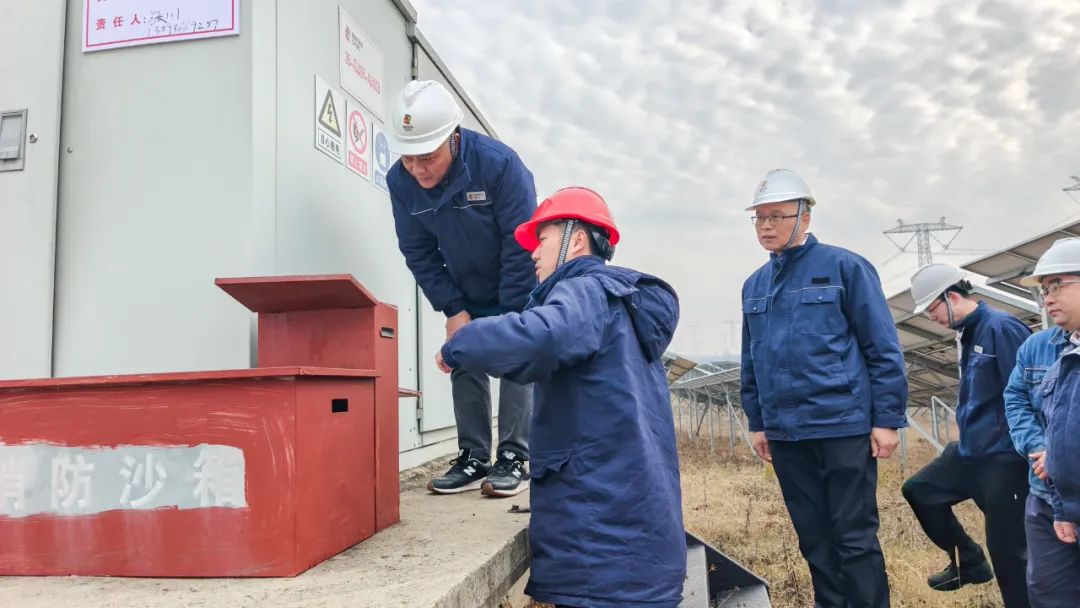 同日,湖北公司黨委副書記、總經(jīng)理鄧勇奔赴大悟高坡光伏場站開展安全環(huán)保檢查。鄧勇指出,安全是場站運(yùn)行的生命線,必須嚴(yán)格落實安全生產(chǎn)責(zé)任制。要加大設(shè)備巡檢力度,及時排除潛在安全隱患,確保電力供應(yīng)穩(wěn)定。針對冬季特殊天氣,要提前做好關(guān)鍵設(shè)備的防寒、防凍、防雨雪措施,增加巡檢頻次,保障發(fā)電效率;要做好運(yùn)行人員的防寒保暖與安全培訓(xùn),確保極端天氣下響應(yīng)迅速、處置有效;要加強(qiáng)電氣設(shè)備安全監(jiān)測,預(yù)防故障,全面落實冬季消防安全工作,確保電氣系統(tǒng)安全穩(wěn)定運(yùn)行。