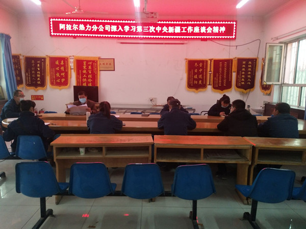 中國電力網(wǎng)訊 11月24日,新疆兵團(tuán)一師電力阿拉熱力分公司黨員干部學(xué)習(xí)宣傳貫徹第三次中央新疆工作座談會(huì)精神,用全會(huì)精神武裝頭腦、指導(dǎo)實(shí)踐、推動(dòng)工作,不斷提升職工群眾的獲得感、幸福感和安全感。