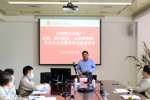 中國電力網(wǎng)訊 為深化“黨史、新中國史、改革開放史和社會(huì)主義發(fā)展史”學(xué)習(xí)教育,推動(dòng)黨員干部學(xué)史明理、學(xué)史增信、學(xué)史崇德、學(xué)史力行,5月21日,大唐淮北發(fā)電廠邀請(qǐng)淮北市“四史”宣講團(tuán)走進(jìn)企業(yè),幫助教育引導(dǎo)黨員干部全面了解“四史”,學(xué)會(huì)歷史思維,培養(yǎng)歷史眼光,增強(qiáng)歷史擔(dān)當(dāng),進(jìn)一步堅(jiān)定理想信念,激發(fā)干事創(chuàng)業(yè)熱情。
