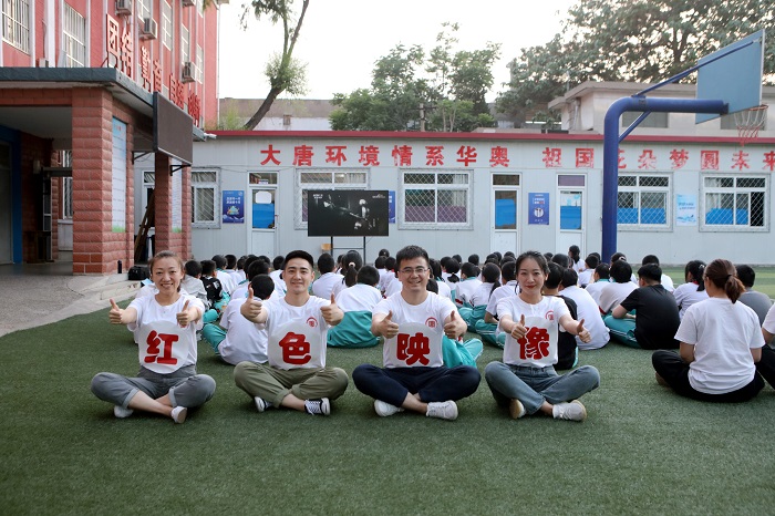 紅色觀影感懷。大唐環(huán)境為華奧學(xué)校捐贈(zèng)影音播放器材,由該公司志愿者組建“紅色映像”放映隊(duì),精選《小兵張嘎》《地道戰(zhàn)》等經(jīng)典紅色電影,課后傍晚在學(xué)校的操場(chǎng)上,為在校住宿的學(xué)生播放露天電影。在觀影現(xiàn)場(chǎng),學(xué)生們?nèi)褙炞ⅰ⒛坎晦D(zhuǎn)睛地看著大屏幕,時(shí)而嚴(yán)肅緊張,時(shí)而默默落淚,深深被電影中跌宕起伏的英雄故事所震撼和吸引。放映結(jié)束后,孩子們對(duì)電影情節(jié)展開了熱烈地討論,在感受露天觀影快樂的同時(shí),將愛黨愛國(guó)教育的種子深深植入孩子們心田,他們紛紛表示,要珍惜來之不易的美好生活,更加努力學(xué)習(xí),回報(bào)祖國(guó)、回報(bào)社會(huì)。
