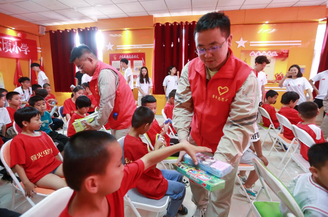 活動(dòng)中,志愿者向小朋友們播放了百集微紀(jì)錄片《信物百年》第43集《渡江戰(zhàn)役第一船“京電輪”》,一起了解在大唐集團(tuán)澎湃發(fā)展歷程背后有著“渡江第一船”之稱的英雄船——“京電輪”的故事,引導(dǎo)他們傳承紅色信仰,堅(jiān)定理想信念。在電力安全課上,為讓深?yuàn)W難懂的火電廠生產(chǎn)流程及環(huán)保工藝變得更易于理解,志愿者們通過精美PPT和現(xiàn)場設(shè)備實(shí)體畫面相結(jié)合的形式將火電廠生產(chǎn)流程及環(huán)保工藝進(jìn)行呈現(xiàn),用實(shí)驗(yàn)與講課相結(jié)合的方式讓電路變得具象而生動(dòng)。答題環(huán)節(jié)中,小朋友們踴躍舉手,將自己剛學(xué)習(xí)理解的電路知識(shí)說出來,加強(qiáng)了學(xué)生們對于電力生產(chǎn)知識(shí)及安全用電知識(shí)的了解。此外,志愿者們還精心準(zhǔn)備學(xué)習(xí)用品,鼓勵(lì)同學(xué)們努力學(xué)習(xí),天天向上。