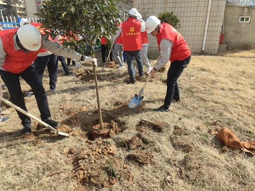 活動(dòng)中,大家?guī)兹艘唤M分工協(xié)作,干勁十足,揮鋤挖坑、扶苗填土、澆水灌溉,忙的不亦樂(lè)乎。經(jīng)過(guò)大家的共同努力,一棵棵新栽種的綠植在和煦的春風(fēng)中昂然挺立,為廠區(qū)環(huán)境帶來(lái)一抹生機(jī)。