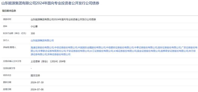 山東能源集團(tuán)300億元小公募項(xiàng)目“提交注冊(cè)”