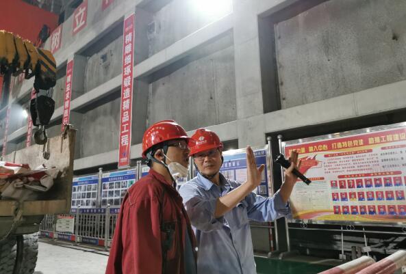楊房溝水電站地廠工區(qū)常務(wù)副主任兼總工程師、黨員肖厚云(右)