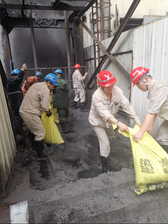 上午10時,暴雨加劇,主機集控室開始大量漏水,吊頂部分塌落,下方的電子設備間漏水嚴重,部分參數(shù)失真;汽機房外的廠內(nèi)主路積水達50公分;煤溝進水;廠前區(qū)全部停電、大門外波濤洶涌;墻外從山上下來的山洪更是濁浪排空。危急關頭,首陽山項目部20余名黨員干部職工積極參與防汛行動,用沙袋堵塞缺口,加固堤壩,險情逐漸消除。17時,首陽山發(fā)電公司運煤通道路基塌方,燃煤運輸中斷。險情就是命令!面對只有兩天用量的煤炭庫存,項目部人員積極參與到首陽山發(fā)電公司抗洪搶險隊伍中,共筑防汛抗洪“同心堤”。經(jīng)過連續(xù)八個小時團結奮戰(zhàn),燃煤供應線路逐步恢復,大唐人抵抗住了偃師幾十年罕見的暴雨襲擊,為地方抗洪搶險、保障城市安全電力貢獻了力量。