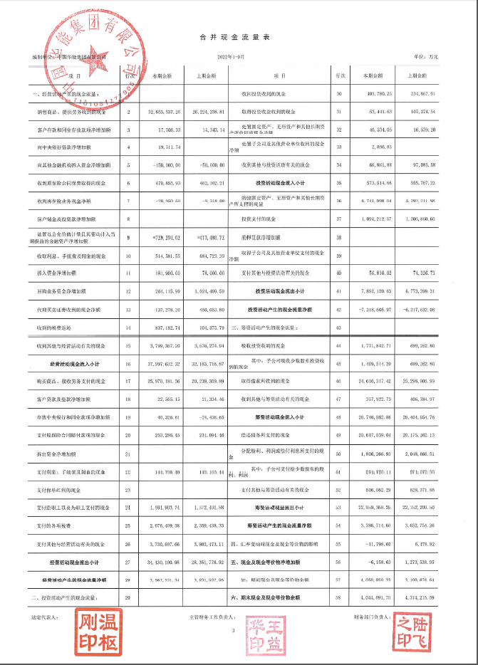 華能集團2022年三季財務報表