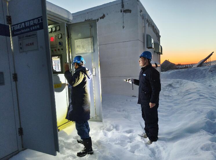 在西北部地區(qū),新疆伊犁地區(qū)日前遭遇連續(xù)降雪,華能伊犁光伏電站地處山區(qū),現(xiàn)場積雪最深處達50公分。場站立即啟動防寒防凍應(yīng)急預(yù)案,重點對匯流箱、箱變、逆變器、光伏板凝凍情況等進行仔細檢查,增加巡檢次數(shù)和動態(tài)跟蹤;及時清除組件積雪,加強應(yīng)急值班管理,持續(xù)做好運行監(jiān)控分析和重點設(shè)備專項檢查工作,確保電力生產(chǎn)設(shè)備始終處于最佳運行狀態(tài),保障關(guān)鍵時刻設(shè)備安全穩(wěn)定供電。