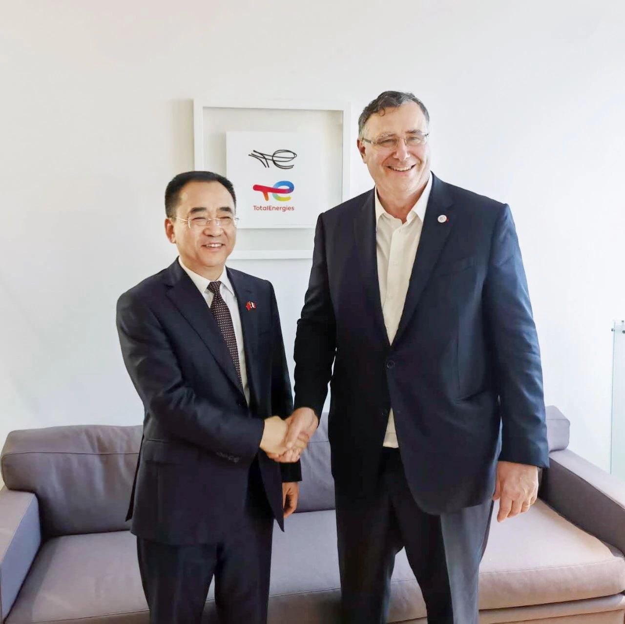 當(dāng)日下午,鄒磊在巴黎與道達(dá)爾能源集團董事長兼首席執(zhí)行官潘彥磊就加強合作進行了友好交流。