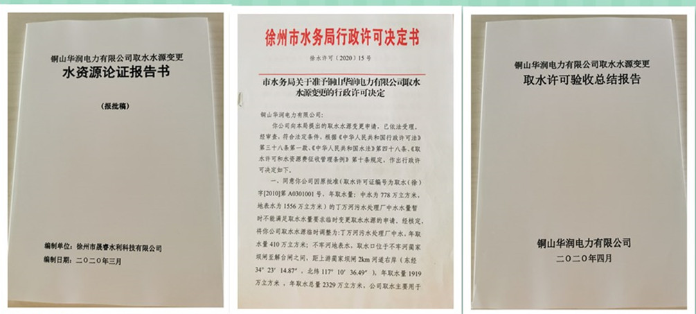 中國電力網(wǎng)訊 2020年4月24日銅山華潤電力有限公司取得新的取水許可證,標(biāo)志著銅山華潤電力有限公司取水水源變更項(xiàng)目順利完成。