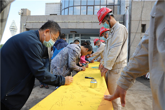 在宣誓活動前,為營造安全氛圍,我長山廠組織職工開展“安全生產(chǎn)月”簽名活動,職工在“落實安全責(zé)任,推動安全發(fā)展”條幅上莊嚴(yán)寫下了自己的承諾。
