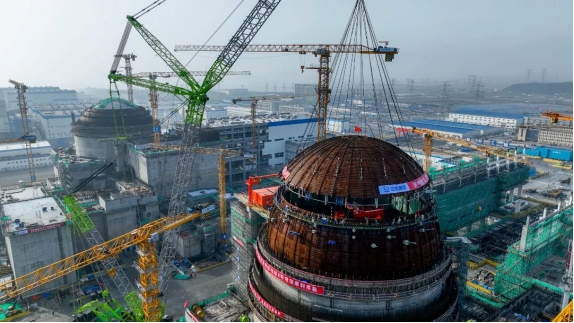 4月15日上午7點(diǎn)39分,田灣核電8號(hào)機(jī)組穹頂球冠順利就位,歷時(shí)2小時(shí)20分鐘。2000噸履帶式吊車緩緩將重量208.84噸的球冠吊離地面,經(jīng)過(guò)起鉤、順時(shí)旋轉(zhuǎn)、行走、提升、逆時(shí)旋轉(zhuǎn)等一系列精準(zhǔn)的動(dòng)作后,最后平穩(wěn)落鉤就位于穹頂球帶上。球冠和球帶合為一體,成為保護(hù)核反應(yīng)堆的重要屏障。
