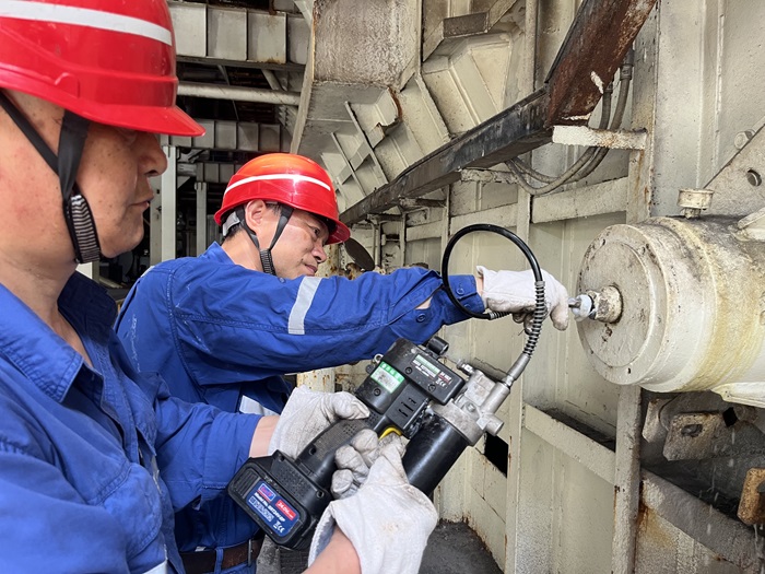 在高溫檢修現(xiàn)場,每天都能看到檢修員工揮汗如雨,奮力拼搏的身影,設(shè)備有缺陷,機(jī)器壞了,那是不能等的,即便再炎熱,溫度再高,也要第一時(shí)間撲上去。在水泵旁、在火嘴邊、在送風(fēng)機(jī)下、在撈碴機(jī)上,檢修員工們總是一邊擦拭著汗水,一邊維修著設(shè)備,他們提出的口號(hào)是“勤消缺、精檢修、戰(zhàn)高溫、保供電”。