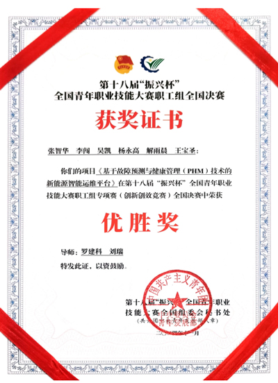 中國電力網(wǎng)訊(通訊員 解雨晨) 日前,電力運(yùn)營君創(chuàng)科技申報的《基于故障預(yù)測與健康管理(PHM)技術(shù)的新能源智能運(yùn)維平臺》項(xiàng)目斬獲第十八屆“振興杯”全國青年職業(yè)技能大賽優(yōu)勝獎。