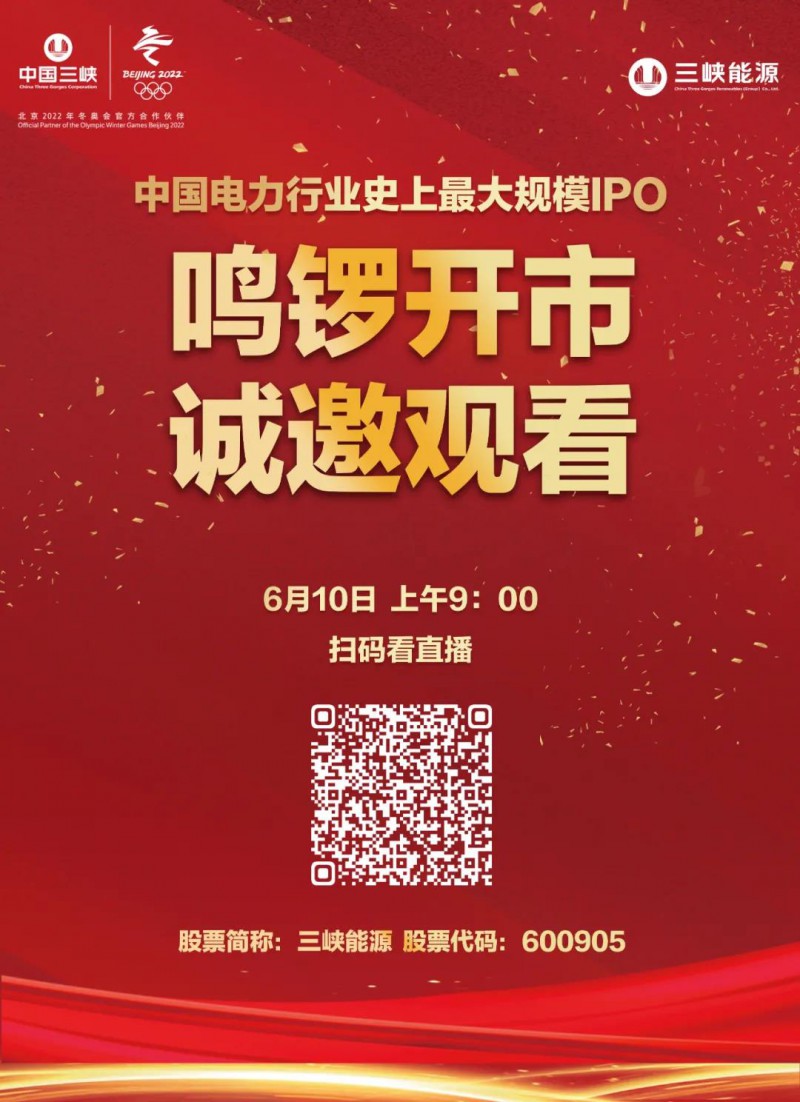 中國(guó)電力行業(yè)史上最大規(guī)模IPO,據(jù)中國(guó)三峽新能源(集團(tuán))股份有限公司發(fā)布《上市公告書(shū)》顯示,三峽能源股票將于今日9:00在上海證券交易所上市。股票代碼“600905”