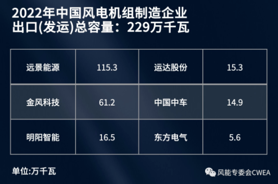 2022年,中國新增風(fēng)電機(jī)組出口(發(fā)運(yùn))容量為229萬千瓦,累計(jì)出口(發(fā)運(yùn))容量達(dá)1193萬千瓦,出口設(shè)備已遍布全球5大洲共49個國家。