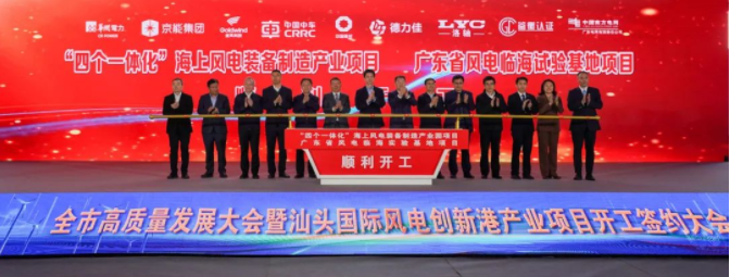 大會(huì)云集了金風(fēng)科技、中車永濟(jì)、德力佳、中材科技、北京鑒衡、華潤(rùn)電力、京能集團(tuán)等國(guó)內(nèi)海上風(fēng)電裝備制造龍頭企業(yè)及能源企業(yè),為海上風(fēng)電母港、“四個(gè)一體化”海上風(fēng)電裝備制造產(chǎn)業(yè)園、廣東省臨海試驗(yàn)基地項(xiàng)目等一批海上風(fēng)電產(chǎn)業(yè)關(guān)鍵環(huán)節(jié)重點(diǎn)項(xiàng)目舉辦了集中簽約開工儀式,正式拉開了汕頭國(guó)際風(fēng)電創(chuàng)新港建設(shè)熱潮!