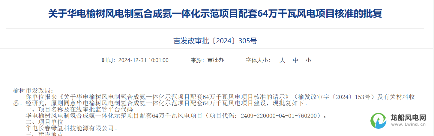 華電榆樹風(fēng)電制氫合成氨一體化示范項目配套64萬千瓦風(fēng)電項目建設(shè)地點位于榆樹市五棵樹鎮(zhèn)、弓棚鎮(zhèn)、劉家鎮(zhèn)、恩育鄉(xiāng)、閔家鎮(zhèn)、先鋒鄉(xiāng)。 項目新建單機容量10兆瓦風(fēng)電機組64臺,總裝機容量為640兆瓦,發(fā)電方式為自發(fā)自用不上網(wǎng);配套建設(shè)箱變、集電線路、道路等附屬設(shè)施。 項目總投資287813.55萬元,建設(shè)期限12個月,項目單位為華電長春綠氫科技能源有限公司。