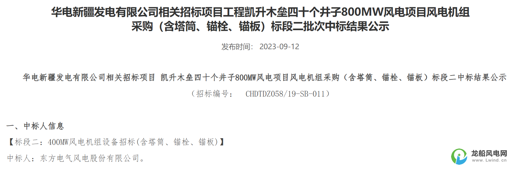 東方電氣風(fēng)電股份有限公司成功中標(biāo)標(biāo)段二,中標(biāo)價(jià)格為68937.600000萬(wàn)元。