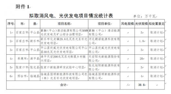 4月18日,河北省發(fā)改委對(duì)2022年到期風(fēng)電、光伏發(fā)電項(xiàng)目擬調(diào)整情況進(jìn)行公示。公示表示,為進(jìn)一步加強(qiáng)風(fēng)電、光伏發(fā)電項(xiàng)目管理,對(duì)2022年底已到期風(fēng)電、光伏發(fā)電項(xiàng)目建設(shè)進(jìn)度進(jìn)行了摸底統(tǒng)計(jì),并對(duì)逾期未建成項(xiàng)目提出了處置意見(jiàn)。其中,擬取消8個(gè)風(fēng)電、光伏發(fā)電項(xiàng)目,規(guī)模合計(jì)388MW;風(fēng)電、光伏發(fā)電項(xiàng)目擬調(diào)整37個(gè),規(guī)模合計(jì)4484MW,其中,光伏項(xiàng)目3816MW。