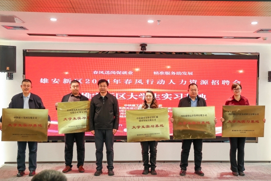 近日,在雄安新區(qū)2024年“春風行動”啟動儀式暨人社工作部署會上,中電建河北雄安智匯城建設發(fā)展有限公司被授予“雄安新區(qū)大學生實習基地”稱號。