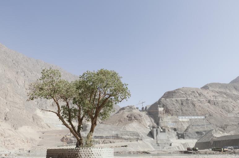 在工程導(dǎo)流洞出口前的河岸邊,幾棵生長百年的原生胡楊樹,日復(fù)一日見證著大壩的穩(wěn)步增高?,F(xiàn)在,建設(shè)者們?yōu)楹鷹顦湫奁鹆吮Wo(hù)墻,在奮力筑牢大國重器中等待著春暖樹綠。