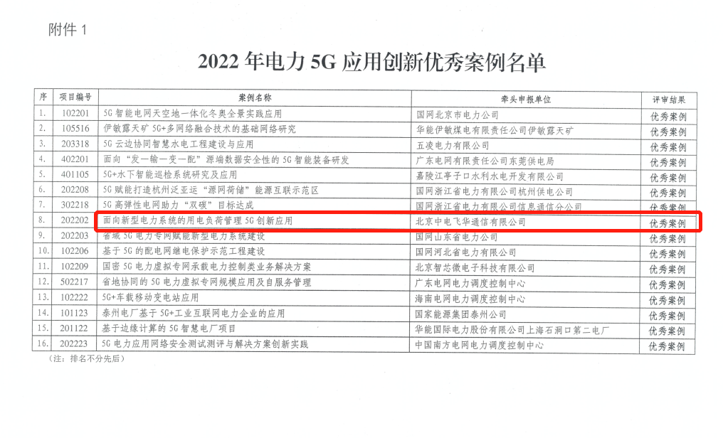 6月2日,國網(wǎng)信通股份中電飛華“面向新型電力系統(tǒng)的用電負(fù)荷管理5G創(chuàng)新應(yīng)用”案例榮獲中國電力企業(yè)聯(lián)合會2022年電力5G應(yīng)用創(chuàng)新優(yōu)秀案例獎。