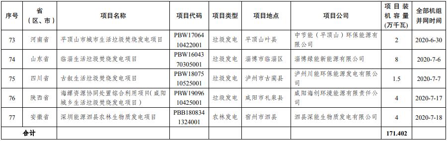一、遵循公平、公正原則,經(jīng)委托國(guó)家可再生能源信息管理中心對(duì)各省(區(qū)、市)通過(guò)審核、公示無(wú)異議的項(xiàng)目進(jìn)行復(fù)核、匯總排序,擬將河北、山西等20個(gè)省(區(qū)、市)的77個(gè)項(xiàng)目納入2020年生物質(zhì)發(fā)電中央補(bǔ)貼規(guī)模,總裝機(jī)容量171.4萬(wàn)千瓦,納入補(bǔ)貼范圍的項(xiàng)目所需補(bǔ)貼總額已達(dá)到2020年中央新增補(bǔ)貼資金額度15億元。其中,農(nóng)林生物質(zhì)發(fā)電項(xiàng)目18個(gè)、裝機(jī)容量53萬(wàn)千瓦,垃圾焚燒發(fā)電項(xiàng)目46個(gè)、裝機(jī)容量116.3萬(wàn)千瓦,沼氣發(fā)電項(xiàng)目13個(gè),裝機(jī)2.1萬(wàn)千瓦,具體結(jié)果見(jiàn)附件。