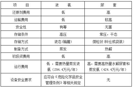 兩種還原劑在安全性和經(jīng)濟性上各有優(yōu)勢,采用尿素作為還原劑是比較安全的,但初期投資造價高,運行費用也高;采用液氨作為還原劑,相對初期投資造價低,運行費用低,但液氨作為重大危險源,在運輸和儲備時存在一定的安全隱患,在運輸成本上以及在生產(chǎn)安全管理上對電廠的運行水平要求較高,存在一定的危險性。因此從經(jīng)濟或運行維護成本考慮,還原劑可以選擇液氨,但從安全角度考慮,則應選擇尿素,中能自備電廠綜合考慮各種因素最終選擇尿素是較好的選擇。