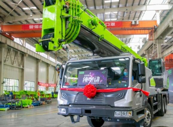 5月7日,一臺25噸極光綠純電動汽車起重機在長沙中聯(lián)重科泉塘工業(yè)園下線。這是全球首臺純電動汽車起重機,被譽為工程機械版“特斯拉”。