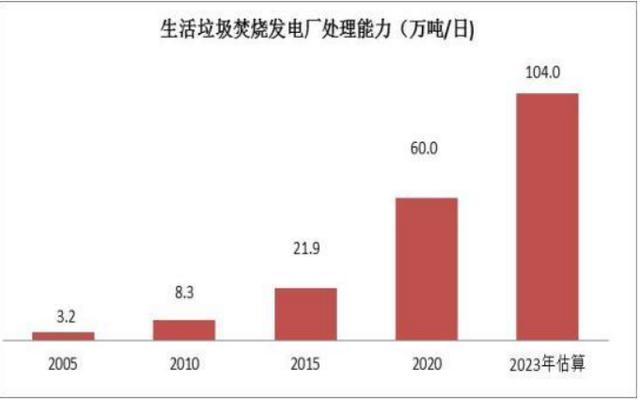 2021年,國(guó)家發(fā)展改革委、住房城鄉(xiāng)建設(shè)部發(fā)布的《“十四五”城鎮(zhèn)生活垃圾分類和處理設(shè)施發(fā)展規(guī)劃》提出,到2025年底,全國(guó)城鎮(zhèn)生活垃圾焚燒處理能力達(dá)到80萬(wàn)噸/日, 焚燒處理能力占城鎮(zhèn)生活垃圾處理能力的65%左右。