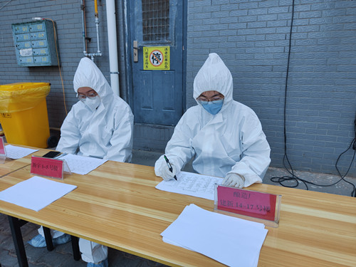 8月7日,五點(diǎn)鐘天還未亮,志愿者們便來到包聯(lián)的建新佳苑社區(qū)開始布置核酸檢測現(xiàn)場。“穿好防護(hù)服后,各自就位,準(zhǔn)備開始核酸檢測。”大家紛紛穿好防護(hù)服各就各位。“請(qǐng)大家提前出示健康碼,保持一米距離,佩戴好口罩,做好個(gè)人防護(hù)”負(fù)責(zé)維護(hù)秩序的賈生耀在隊(duì)首和隊(duì)尾之間來回走動(dòng)嘴里一直喊著大家排好隊(duì)做好防護(hù);另一邊,李正陽在核酸檢測“核心”環(huán)節(jié)之一的崗位上,為檢測人員掃碼并確認(rèn)其信息是否正確。全副武裝的他表示:這工作看似很簡單沒有什么技術(shù)含量,但其實(shí)更多的是需要細(xì)心,要“人碼”一致,還要盯住做到“十人一組”。“大爺,您是本小區(qū)的嗎?住在幾棟幾單元?”在做完核酸登記信息的區(qū)域中,一個(gè)小小的白色身影被數(shù)列隊(duì)伍淹沒,只能聽見她高八度的聲音在不停詢問著每一個(gè)登記的人員,她就是配電帶電作業(yè)處里唯一的一名姑娘——劉佳敏。別看她是個(gè)女孩子,卻是“中氣十足”,建新佳苑大多數(shù)都是老人,歲數(shù)大一點(diǎn)的一些老人耳朵不太靈敏,聲音小了就聽不見在說什么,于是她耐心地一遍又一遍大聲詢問著,直到信息統(tǒng)計(jì)結(jié)束。當(dāng)天雖然下了一陣雨,可是溫度卻并沒有降下來,幾個(gè)人穿著防護(hù)服仿佛在“蒸桑拿”一般,里面的衣服已經(jīng)完全浸濕,他們開玩笑著說:“這可一點(diǎn)都不遜色于穿絕緣服工作,不管黃衣服還是白衣服,注定是要‘濕身’。”