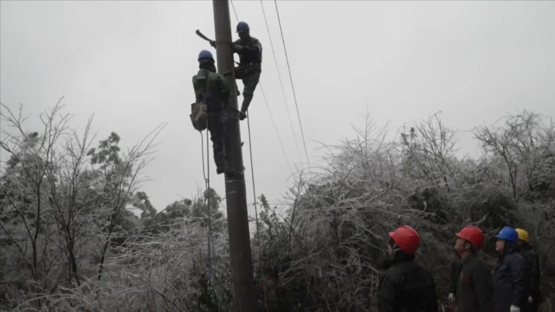 “因下凍雨的原因,這個變電桿覆冰好厲害,現(xiàn)在要把這個電桿冰除掉,才能夠上桿作業(yè),我們就采取土辦法,用刀刮,因為野外生不了火,沒有其他設(shè)備,把這個冰刮了以后,再進行人工作業(yè),電桿打滑打得好厲害。”國網(wǎng)鄱陽縣供電公司游城供電所負(fù)責(zé)人謝雪兵說道。