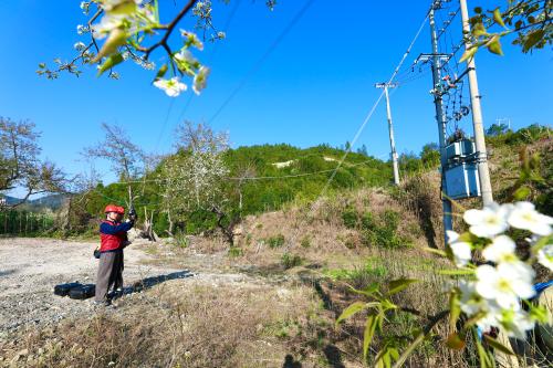 在這如詩(shī)如畫(huà)的梨山花海中,頭戴安全帽,身著國(guó)網(wǎng)福建電力“雙滿意”(壽寧閩東之光)共產(chǎn)黨員服務(wù)隊(duì)“紅馬甲”的身影格外引人注目,他們手持紅外測(cè)溫儀,穿梭在雪白的梨花的小徑上,成為一道獨(dú)特的風(fēng)景。巡視過(guò)程中,他們仔細(xì)地對(duì)10kV浦南線進(jìn)行檢查,每一個(gè)接頭、每一臺(tái)變壓器,都是他們關(guān)注的重點(diǎn)。與此同時(shí),無(wú)人機(jī)也在梨山上空盤(pán)旋,從高空視角對(duì)線路進(jìn)行全方位巡查。通過(guò)無(wú)人機(jī)搭載的高清攝像頭,工作人員可以清晰地看到線路是否存在安全隱患,大大提高了巡檢效率和準(zhǔn)確性。