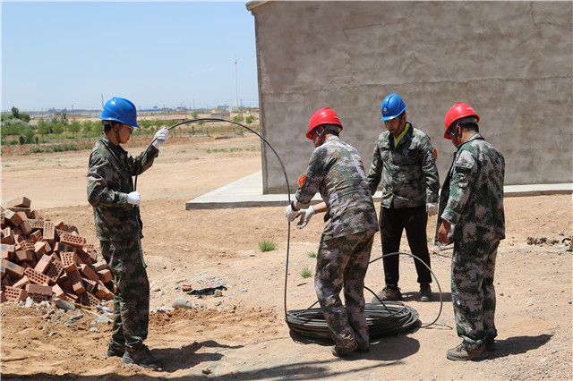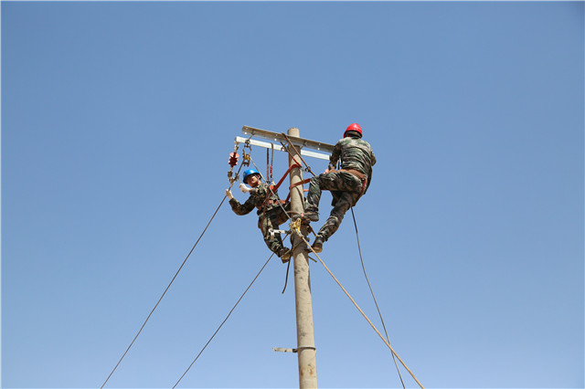 施工當(dāng)天烏海地區(qū)高溫來襲,施工難度陡增,六五四供電分局黨員突擊隊成員在三十五攝氏度的高溫下,頭頂烈日、腳踏電桿。按照分工干脆利落的進行立桿、安裝橫擔(dān)、緊線等工作。經(jīng)過3個小時的作業(yè),終于順利地為此貧困戶送上電。貧困戶張占飛的母親非常激動。“原先以為只是簡單修一下,沒想到還需要這么多步驟,他們做得這么細致、這么認真,真的是非常感謝他們。”