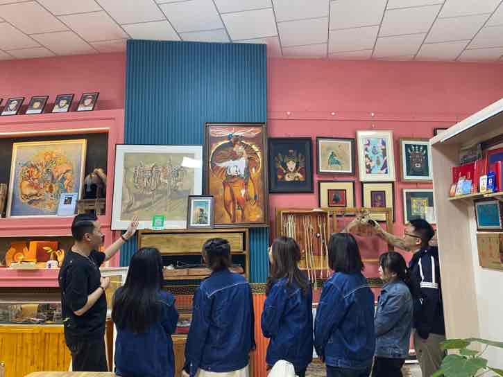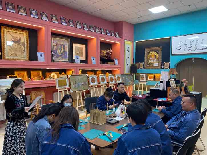 本次活動內容豐富,黨員干部職工積極前往阿拉善盟非物質文化遺產皮雕藝術傳承研究展示中心參觀并體驗非遺文化皮雕技藝。首先,由阿拉善盟非物質文化遺產傳承人“皮雕匠人”張浩老師向大家介紹皮雕技藝在阿拉善地區(qū)傳承發(fā)展的歷史以及在展的各種皮雕藝術品,并現(xiàn)場演示了皮雕制作的基本技法,緊接著帶領大家制作傳統(tǒng)皮質鑰匙包。職工們熱情高漲,紛紛動手操作,開料、刻線、描摹、染色、縫線,皮面和針線來回穿插,充分體驗到了非遺的魅力和手作的樂趣,最后在緊張刺激的民族團結知識問答題中結束了本次活動。