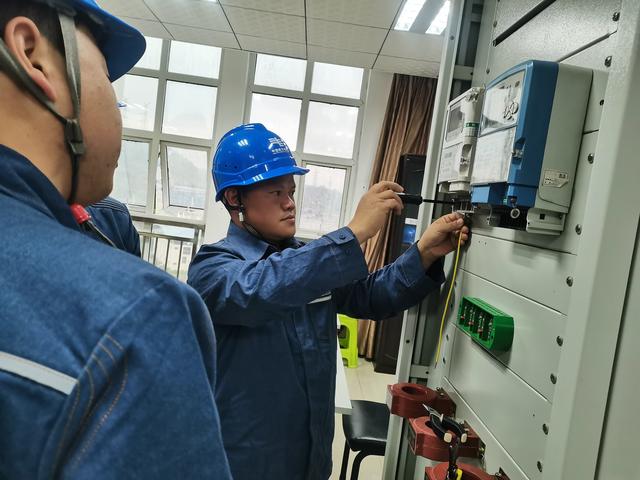 他總結(jié)出裝表接電“七步法”:第一步,安裝就位。將電能表、負(fù)荷管理終端、電流互感器、聯(lián)合接線盒等設(shè)備安裝就位,布置原則是電能表與聯(lián)合接線盒之間的垂直距離為15厘米,互感器之間的水平距離為15厘米。第二步,下料。根據(jù)互感器、聯(lián)合接線盒、電能表、負(fù)荷管理終端之間的距離按照黃、綠、紅、黑的相色對(duì)線材下料,并留有一定的裕度。第三步,綁扎。這一過(guò)程中嚴(yán)禁出現(xiàn)交叉。捆扎導(dǎo)線時(shí),對(duì)應(yīng)的3根黃、綠、紅導(dǎo)線和1根黑導(dǎo)線按照3-4-3的位置排列,即黃、紅兩色在外層,綠、黑兩色在內(nèi)層,黑色靠外。第四步,走向。各個(gè)彎折點(diǎn)用扎帶捆扎,對(duì)齊后按預(yù)留8-10mm的長(zhǎng)度剪齊。第五步,接入接線盒。將線頭按1.5-2mm的長(zhǎng)度剝?nèi)ソ^緣層,套上號(hào)頭后與接線盒連接,擰緊螺絲。第六步,接互感器。線圈的做法,將導(dǎo)線折彎90度,用尖嘴鉗彎成半圓,再換一下手彎成圓形。線圈以順時(shí)鐘鉗入。第七步,按照接線盒到電能表和負(fù)荷管理終端之間的距離依次分色拆線接入。