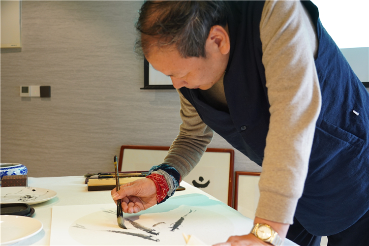書朋畫友,筆墨傳道。書畫藝術(shù)家們和國網(wǎng)象山縣供電公司書畫愛好者們互動交流,暢談創(chuàng)作體會、探討書畫技巧。更有書畫藝術(shù)家為國網(wǎng)象山縣供電公司青年員工講解書畫知識,指點(diǎn)書畫要領(lǐng)。大家一起揮毫潑墨,切磋技藝,交流感情、共抒情懷,共同提高,促進(jìn)傳統(tǒng)文化建設(shè)。場面氣氛熱烈,洋溢著濃厚的文化氛圍。