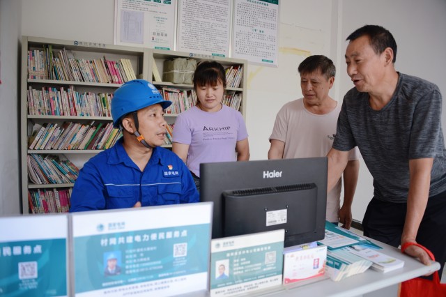 今年以來,國網(wǎng)榮州供電公司堅持以黨建引領(lǐng)供電服務(wù),主動將供電服務(wù)網(wǎng)格融入地方政府網(wǎng)格工作,由留佳供電所黨支部與大屋坡村簽訂鄉(xiāng)村振興共建合作協(xié)議,并按照“公司+支部+供電所”三級助力模式,率先在大屋坡村成立首個政企合署辦公、網(wǎng)格融合型電力便民服務(wù)站,定期安排工作人員駐點辦公,實現(xiàn)電力臺區(qū)經(jīng)理與政務(wù)人員“政策共推、訴求共解、業(yè)務(wù)共辦”,讓老百姓不出村就能解決用電咨詢、業(yè)務(wù)辦理、繳納電費等業(yè)務(wù)。