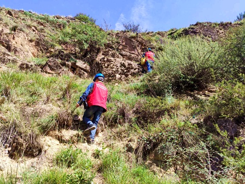經過一個多小時顛簸,巡線車停在一座無名大山的山腳下,沒路了,張富進與師傅們連忙下車,再次清點工具,向大山進發(fā)。山路崎嶇不平,他們艱難地一步一步向前挪動,不時仰起頭隱約可以看到頂上一座鐵塔的塔尖。