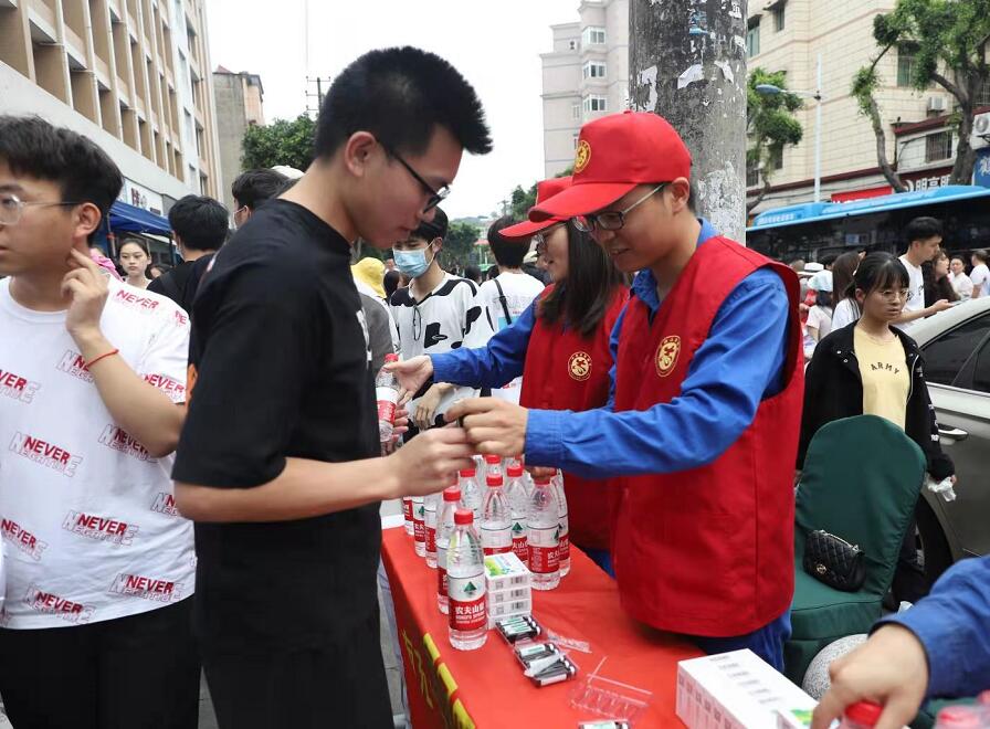 “保持平常心態(tài),加油,你們一定能考出好成績。”上午8時20分左右,隨著考生陸續(xù)進(jìn)場,志愿服務(wù)點(diǎn)前熱鬧了起來,志愿者一邊為有需要的考生派發(fā)考試和防暑用品,一邊為他們加油鼓勁。
